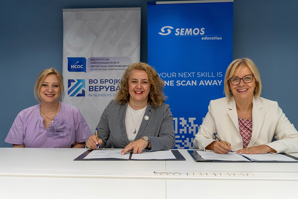 Семос Едукација и Институтот за сметководители и овластени сметководители на Република Северна Македонија (ИСОС) потпишаа Меморандум за стратешка соработка со цел унапредување на дигиталната писменост и професионалните компетенции на сметководителите во земјава.