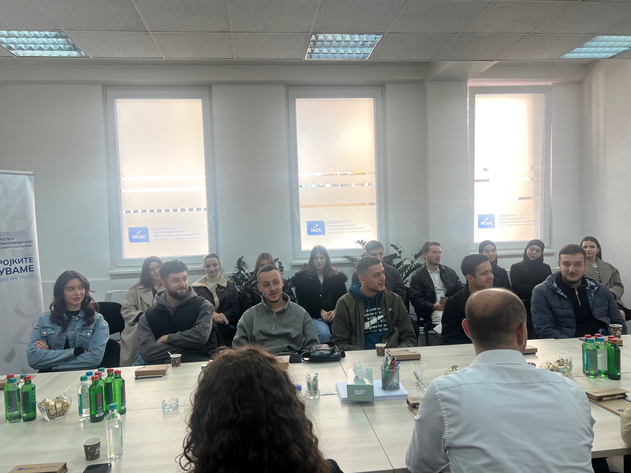 Во рамки на посетата, претседателката Весна Прентоска и стручната служба на ИСОС го презентираа работењето на Институтот, мисијата и улогата на сметководствената професија, како и актуелните професионални стандарди и етички принципи кои ги водат овие процеси. Студентите се запознаа со можностите за практична работа во сметководствени бироа и компании, како важен чекор кон нивниот професионален развој.